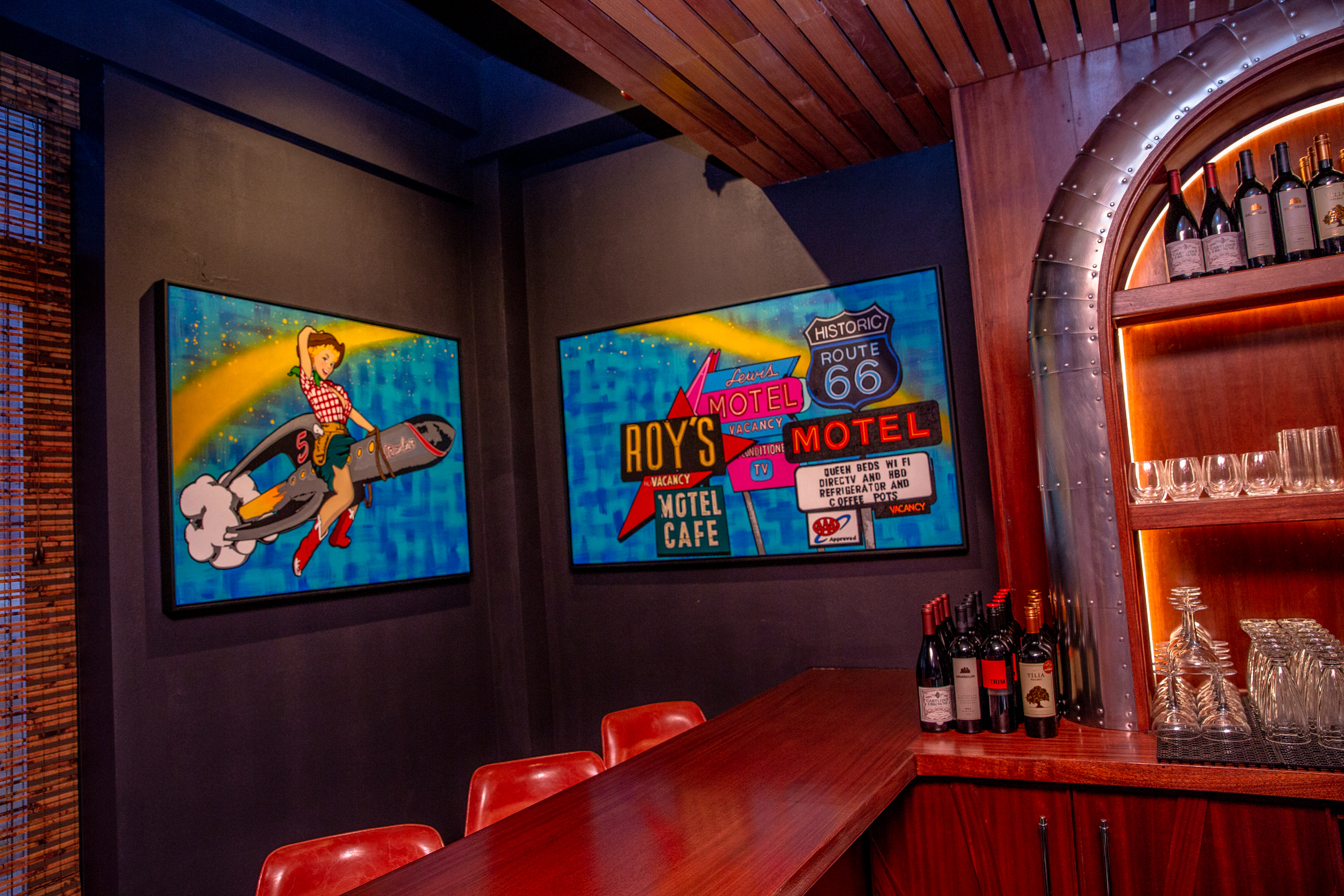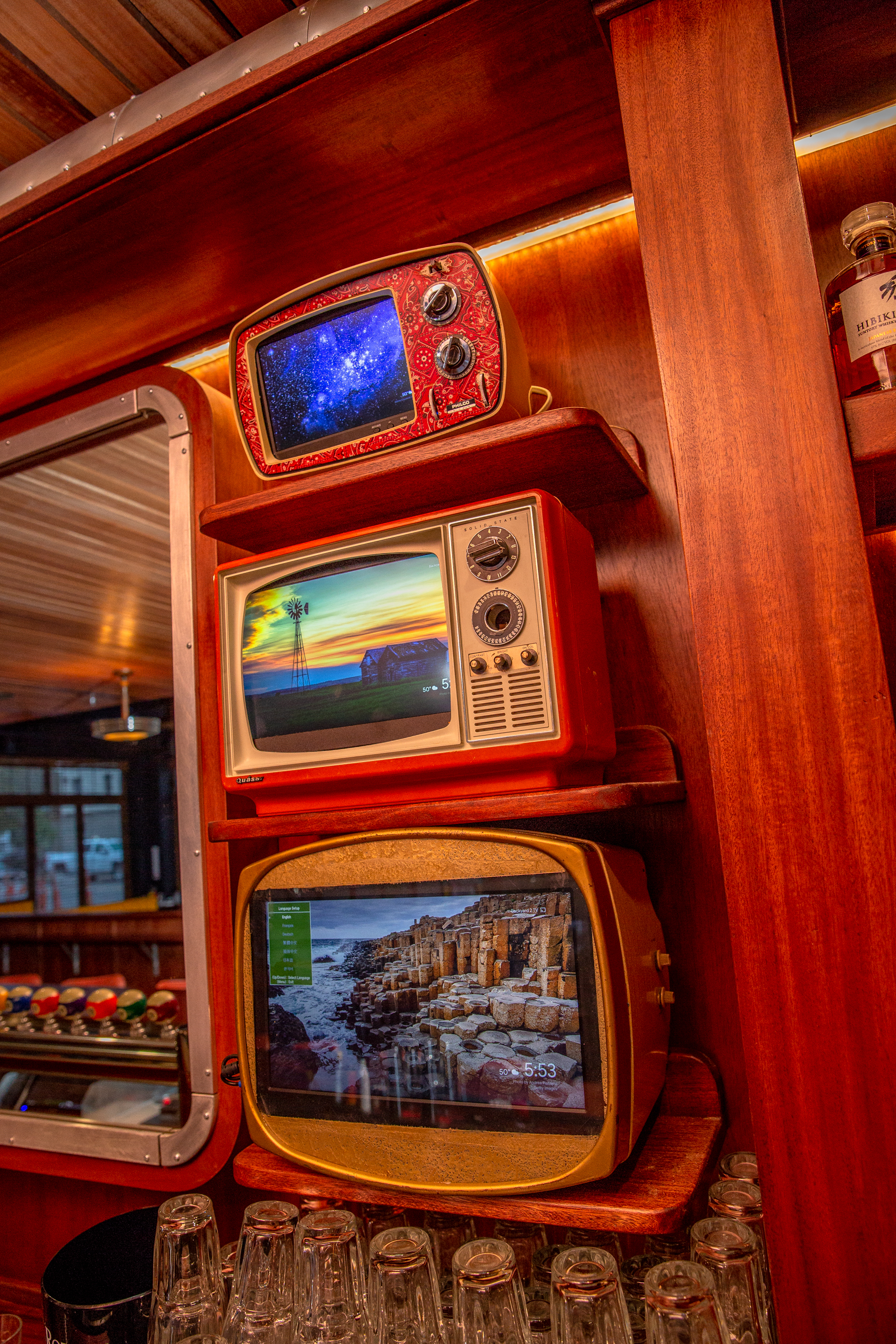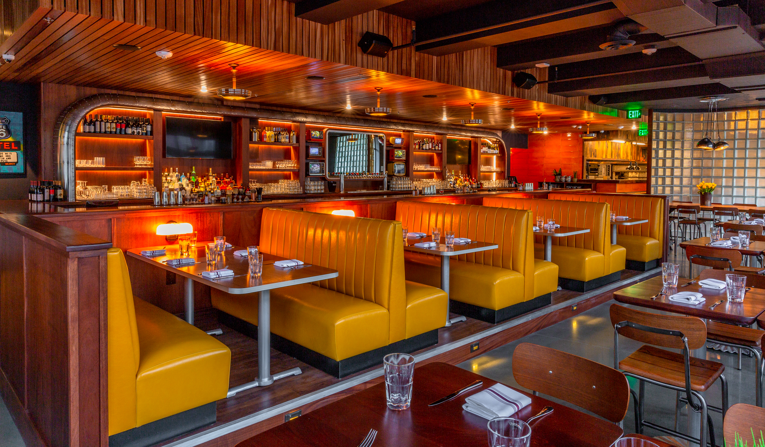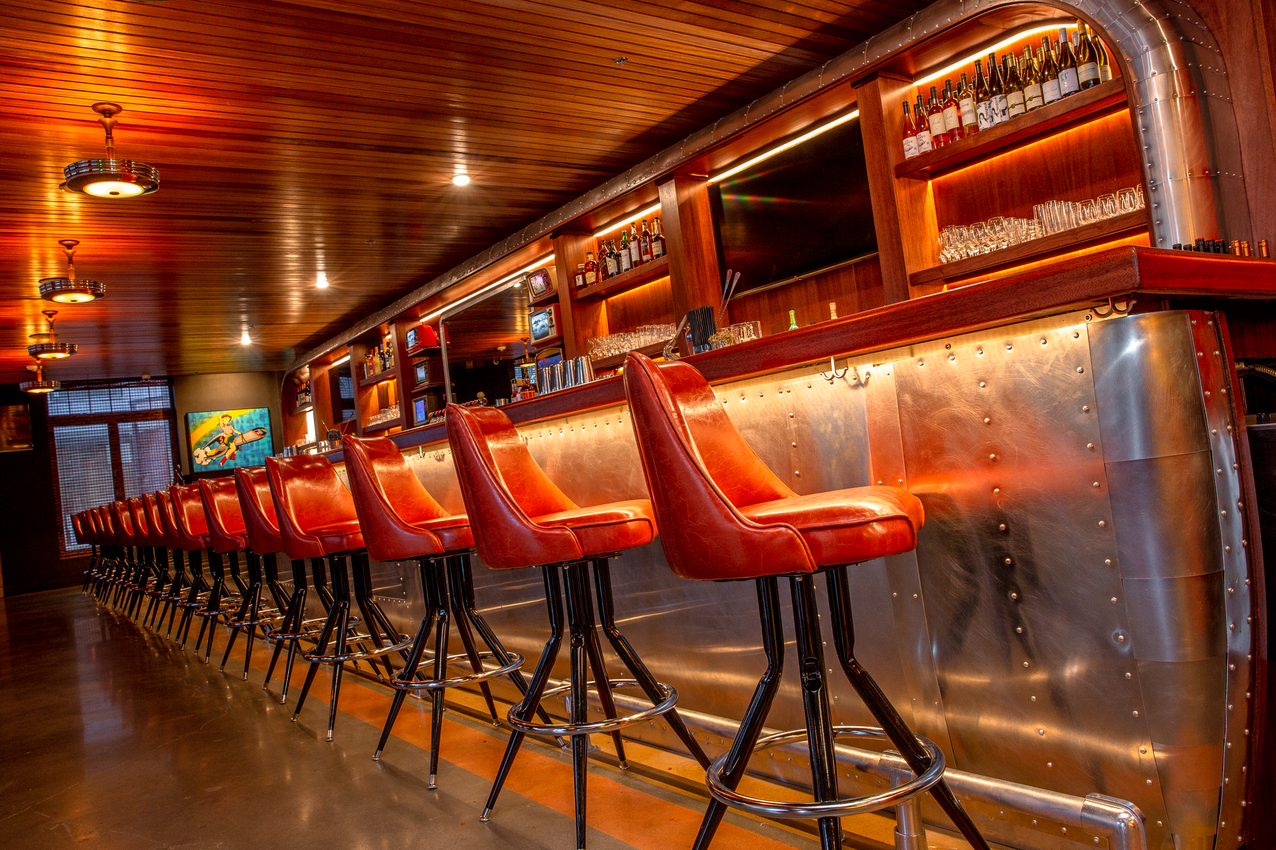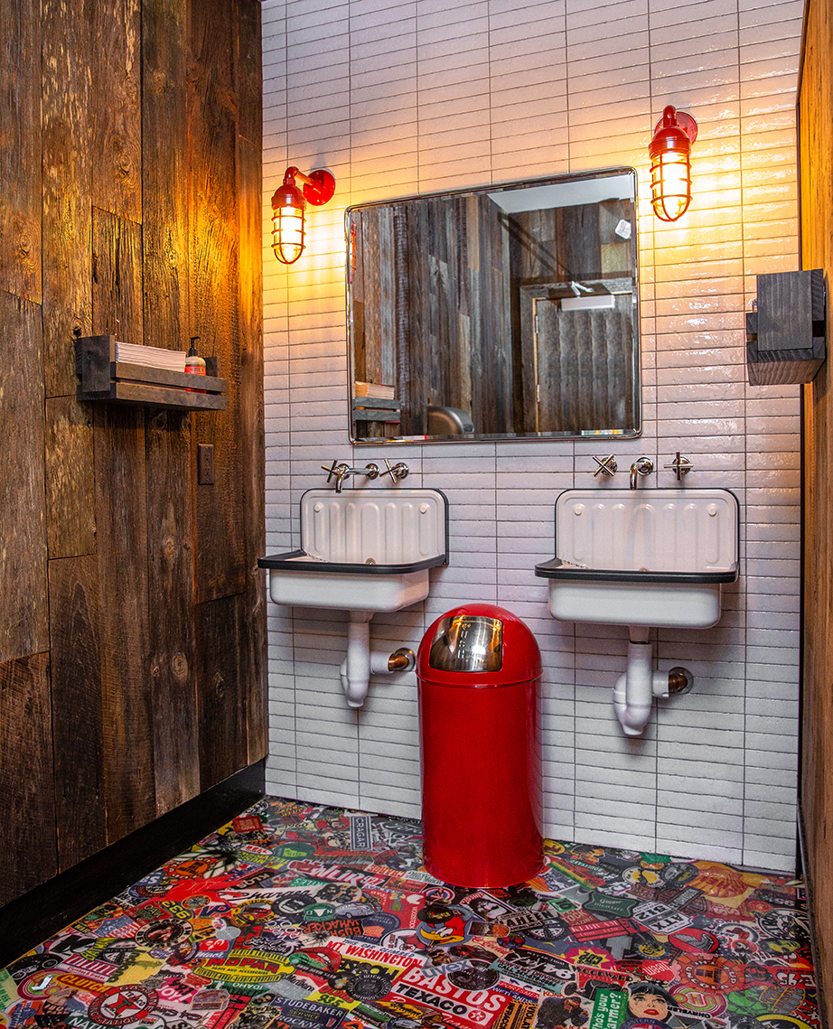 The standout is the 42’ main bar that has taken it’s design inspiration from a classic Airstream trailer. Other signature design elements include “The Garage Bar” built to feel like your dad’s favorite hideaway, and a custom designed throwback sticker collage used as flooring in both restrooms.