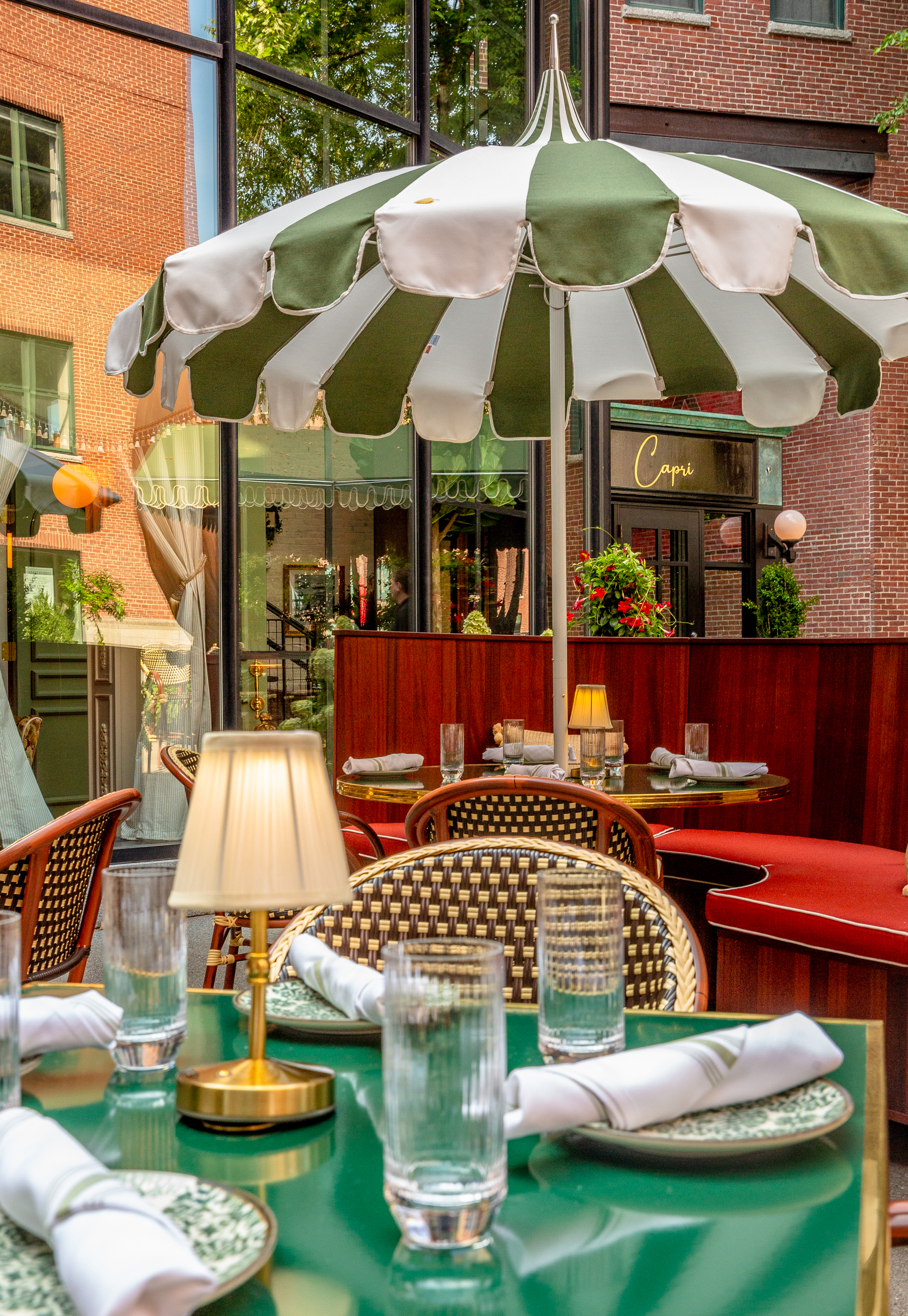 Capri is like a Sophia Lauren film, its classic, a little bit sassy, and always fun to watch. Tucked between Boston’s South End and South Boston proper, Capri is located in the heart of Boston’s fashionable SOWA Art + Design district. (As if we needed an reason to get all dressed up). The meticulously restored main dining room and two story grand atrium piano bar overlook a sprawling al fresco dining patio anchored by a large full service Cabana Bar and towering field stone fireplace.