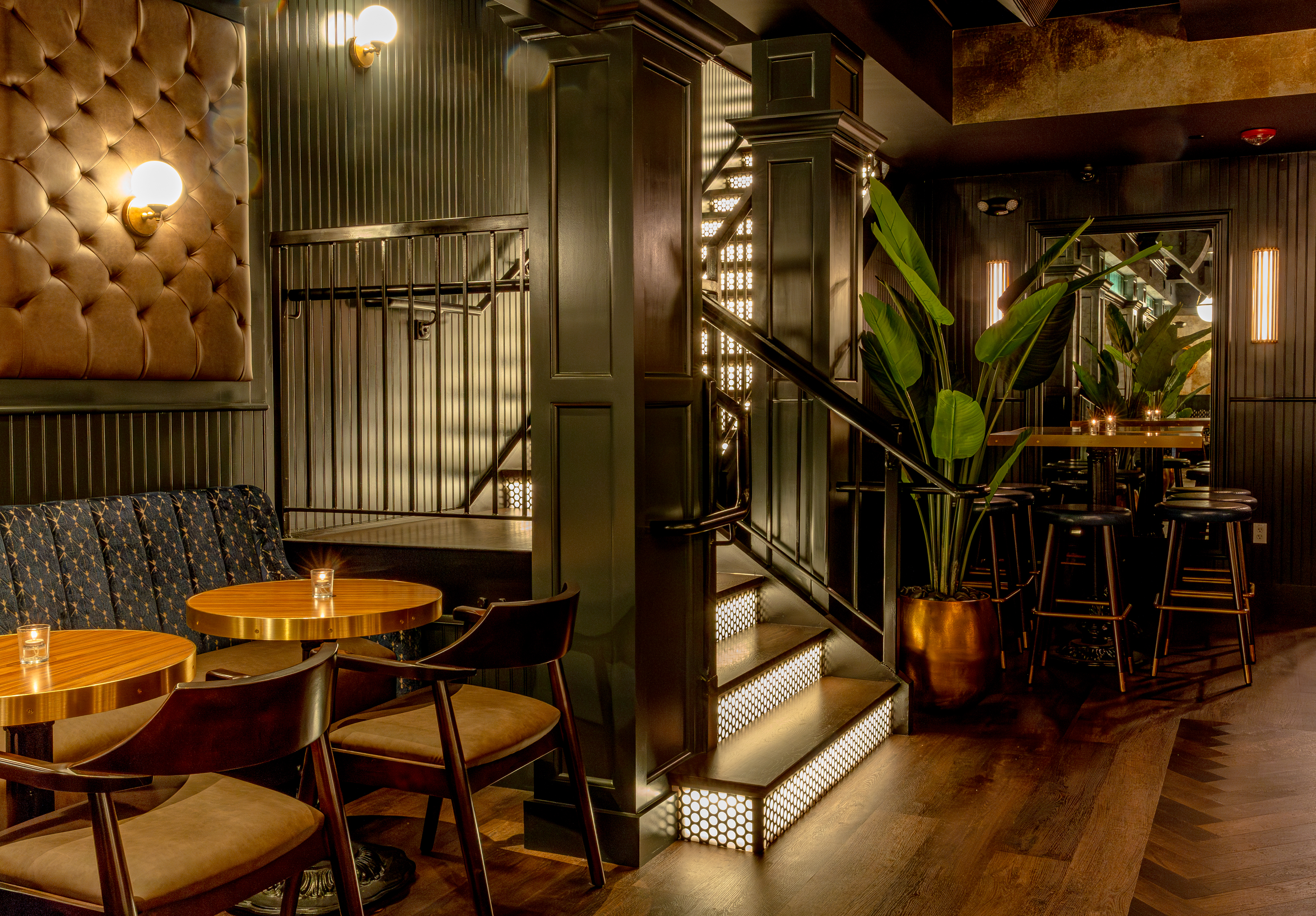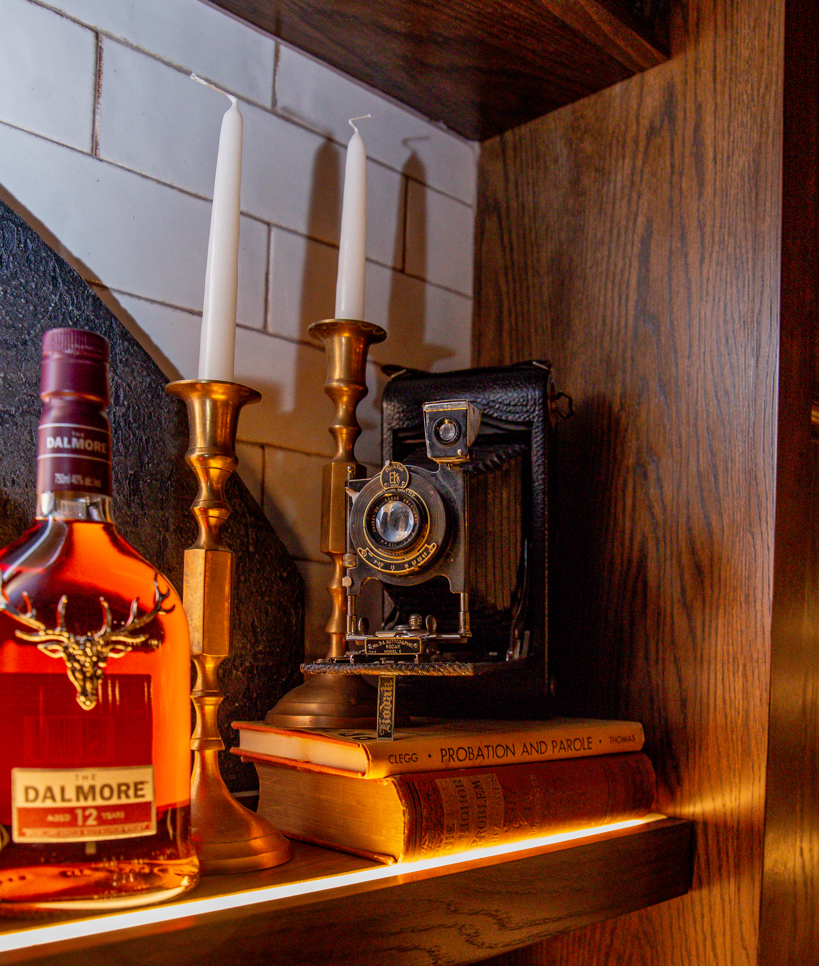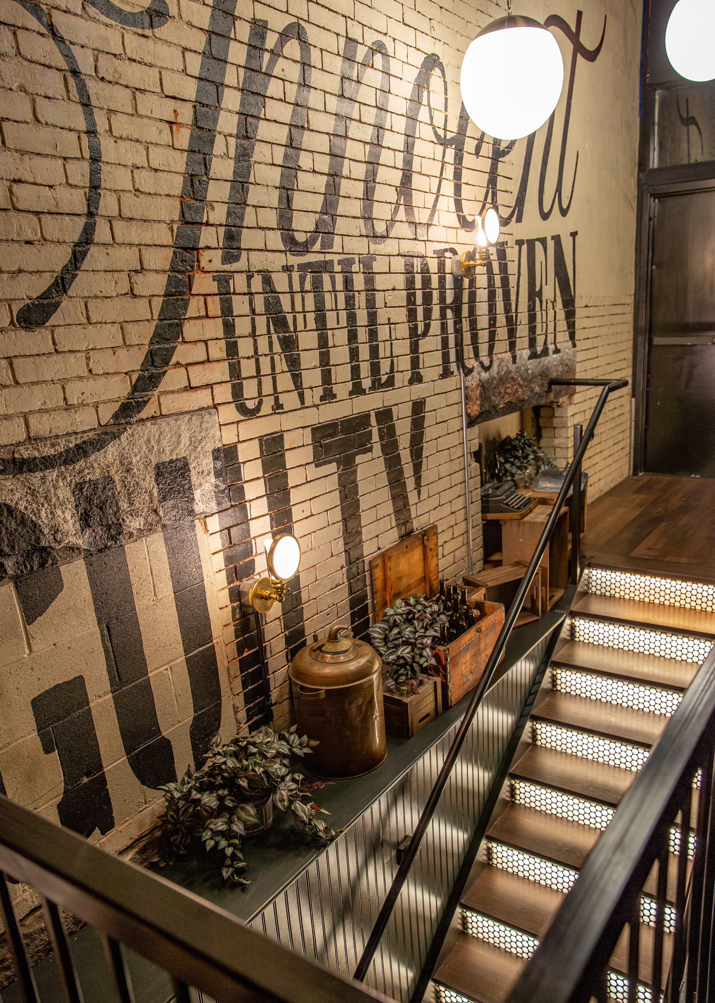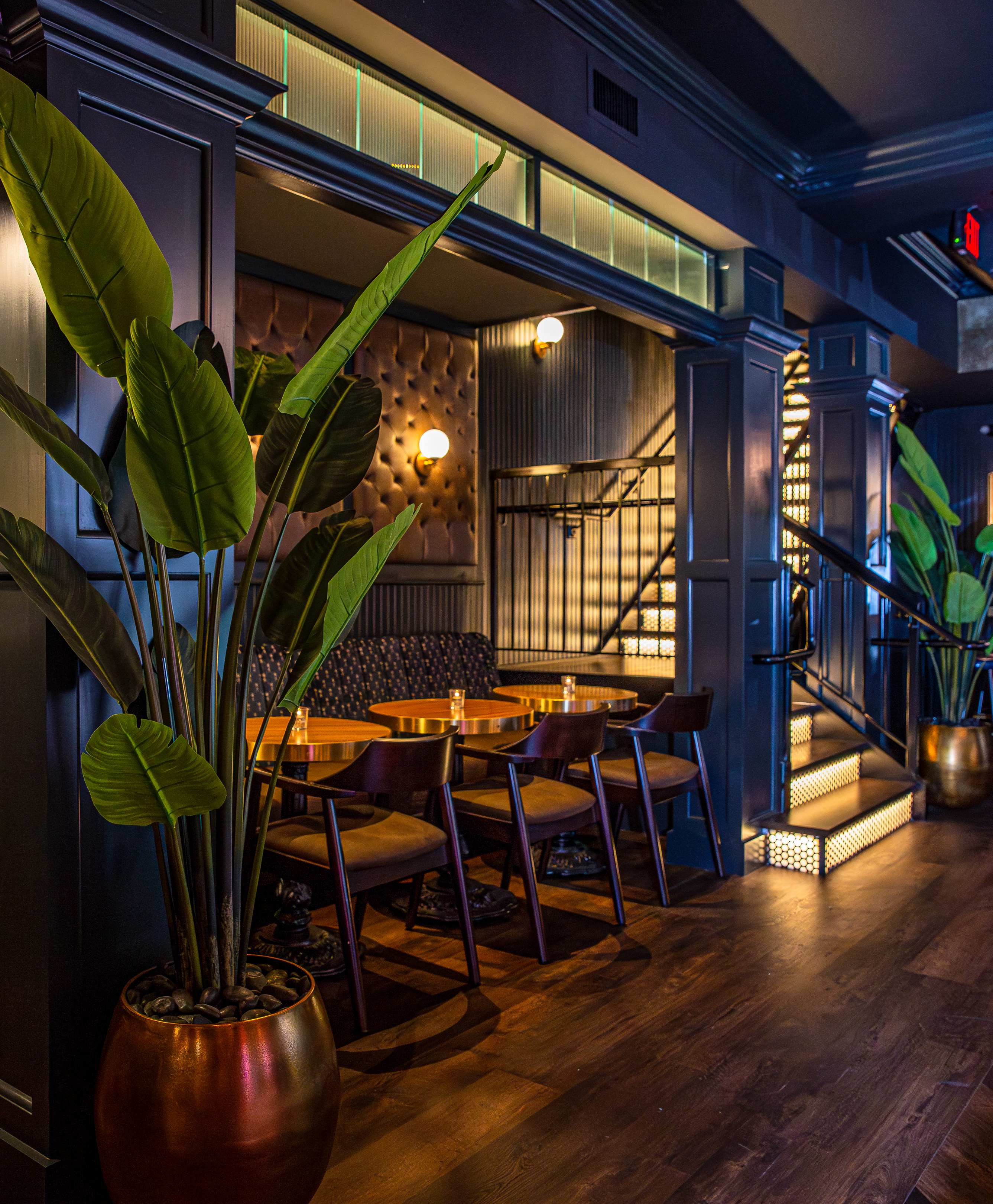 Every once in a while, in our line of work, you get to place your hands on the past. So…when we were asked to design a sexy underground lounge in the unused basement of one of Boston’s oldest police stations, we were totally down. We wanted to be sure to pay tribute to the history of the space, but we didn’t want to be cliche. We felt a classic room fitting of its Back Bay location with a hint of art deco detective vibes was the way to go. The 27′ long bar with its custom built clock and brass details is the focal point of the room. Seating is classic in design but loungy so the room feels comfortable. Guests enter the space in one of two dramatic ways… down the custom built backlit hidden steel staircase, or through the discreet double doors tucked in the alley behind the building.
