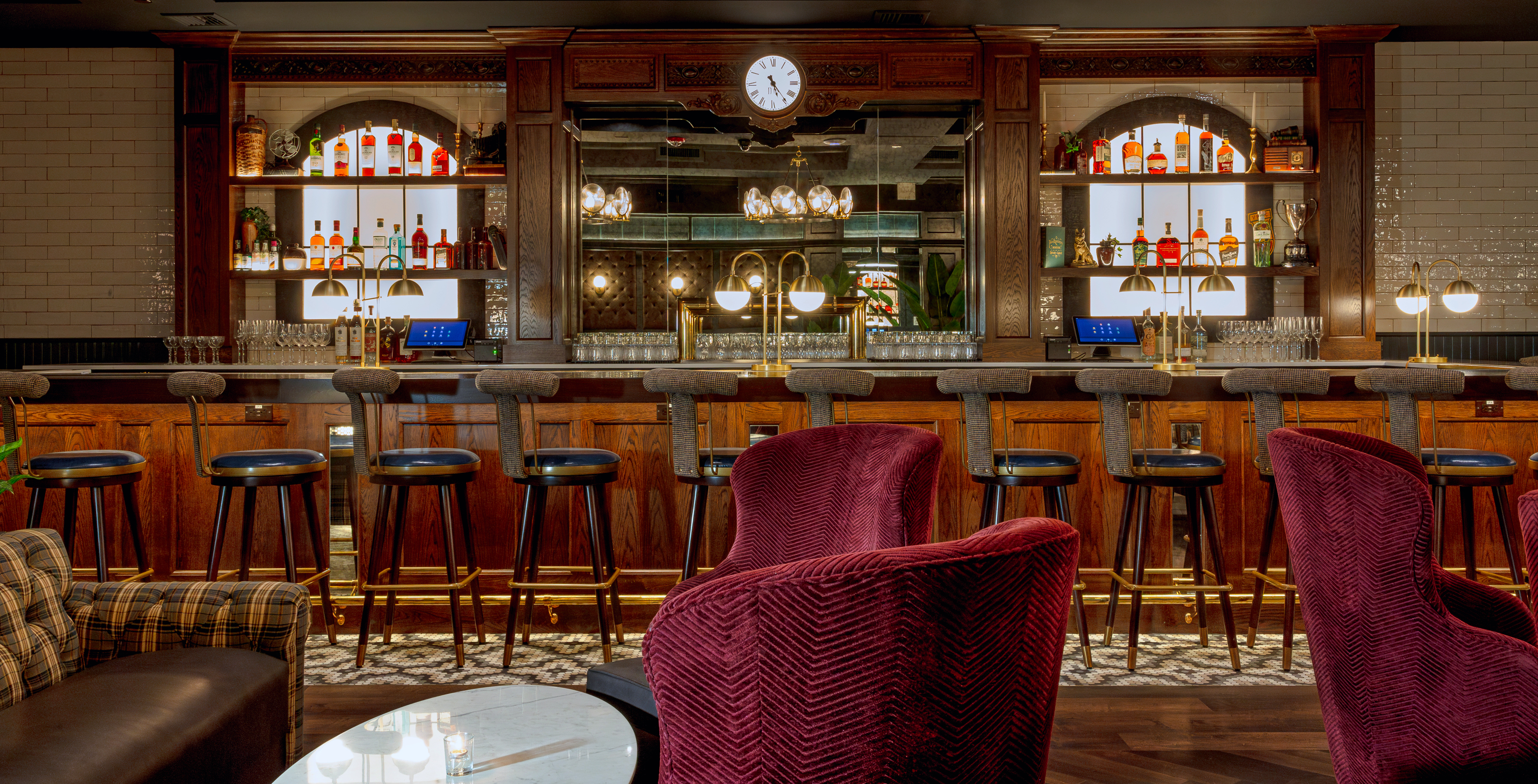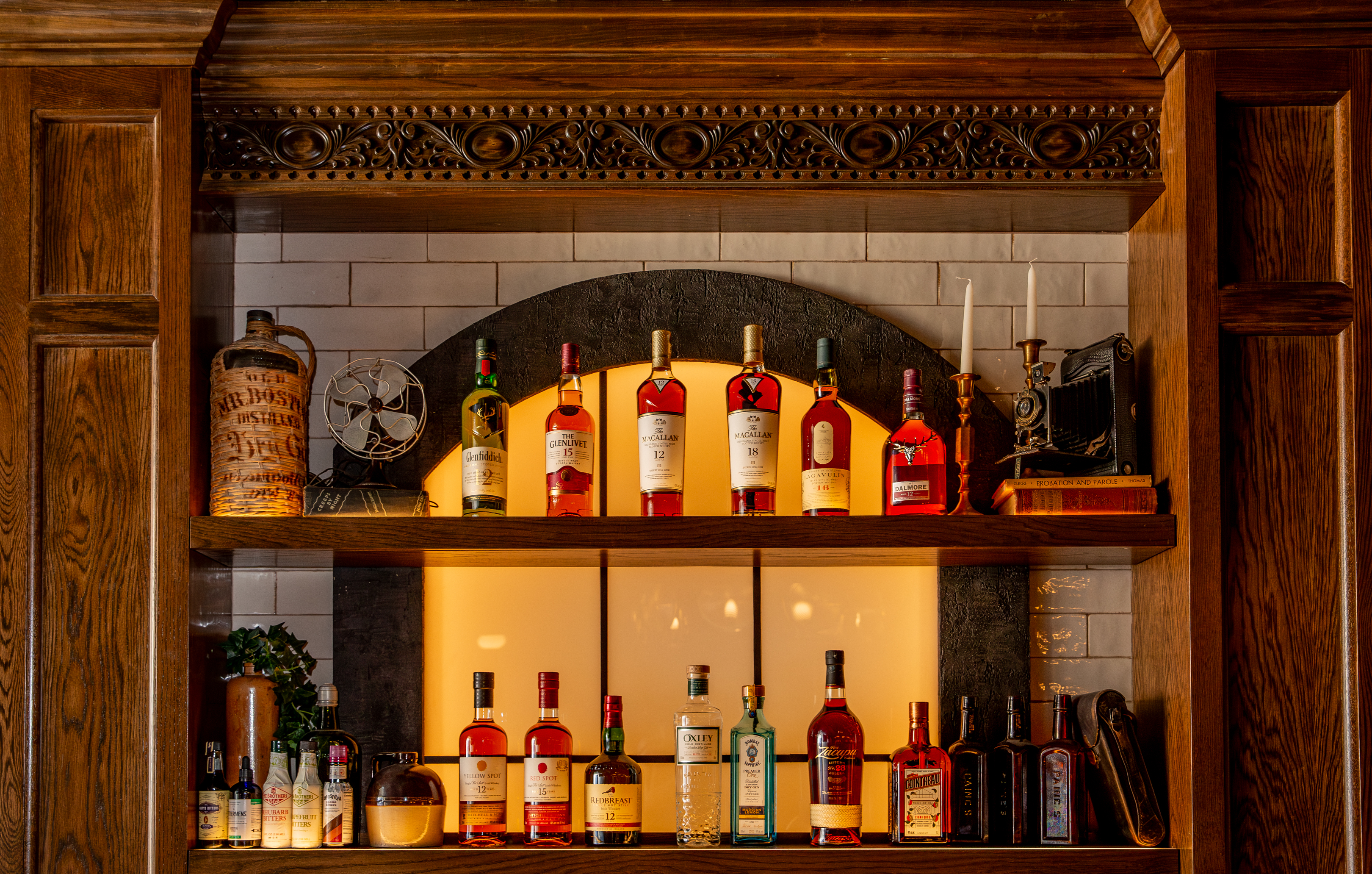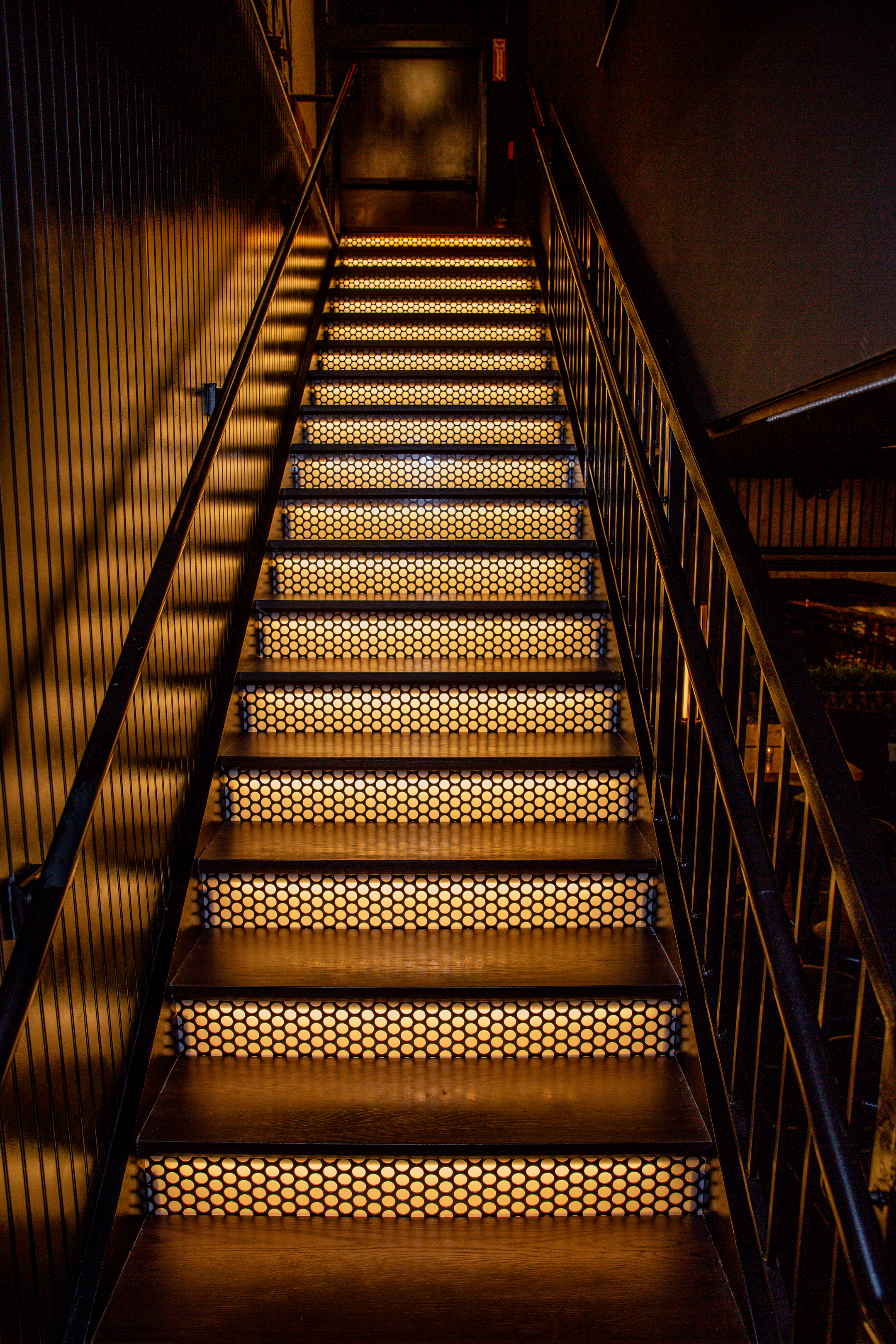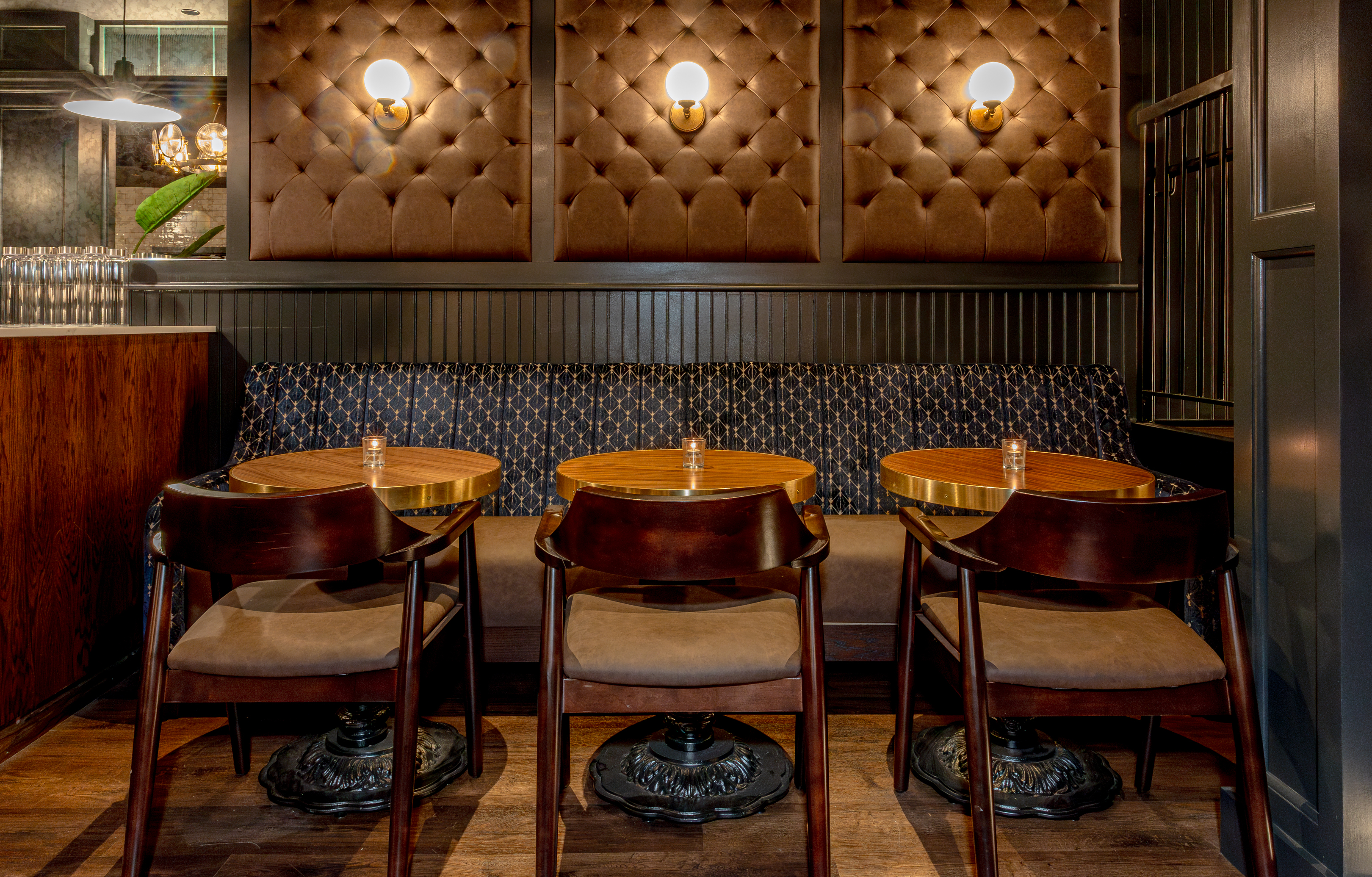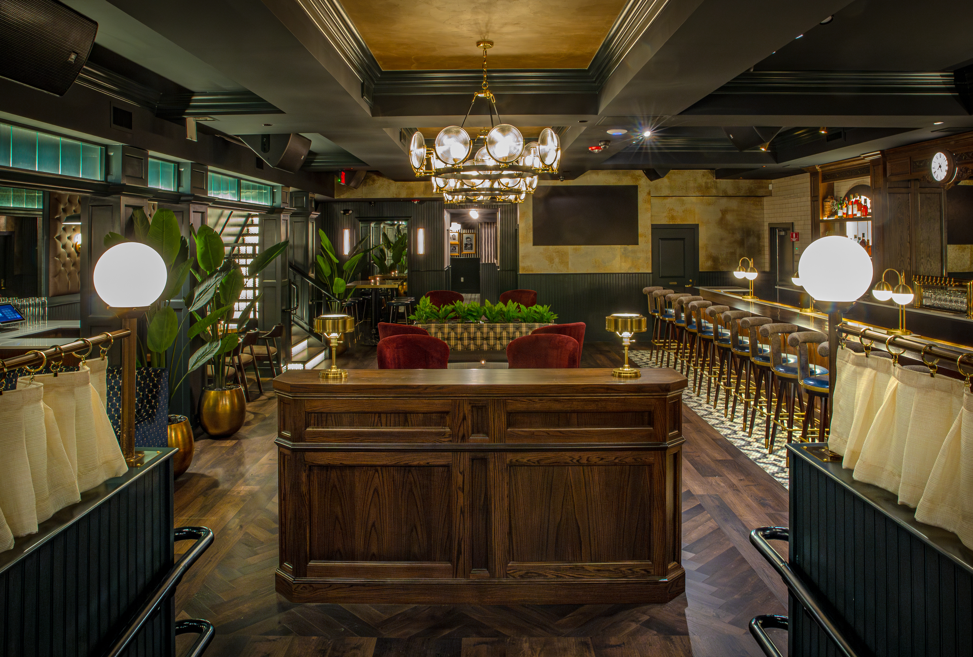 Every once in a while, in our line of work, you get to place your hands on the past. So…when we were asked to design a sexy underground lounge in the unused basement of one of Boston’s oldest police stations, we were totally down. We wanted to be sure to pay tribute to the history of the space, but we didn’t want to be cliche. We felt a classic room fitting of its Back Bay location with a hint of art deco detective vibes was the way to go. The 27′ long bar with its custom built clock and brass details is the focal point of the room. Seating is classic in design but loungy so the room feels comfortable. Guests enter the space in one of two dramatic ways… down the custom built backlit hidden steel staircase, or through the discreet double doors tucked in the alley behind the building.