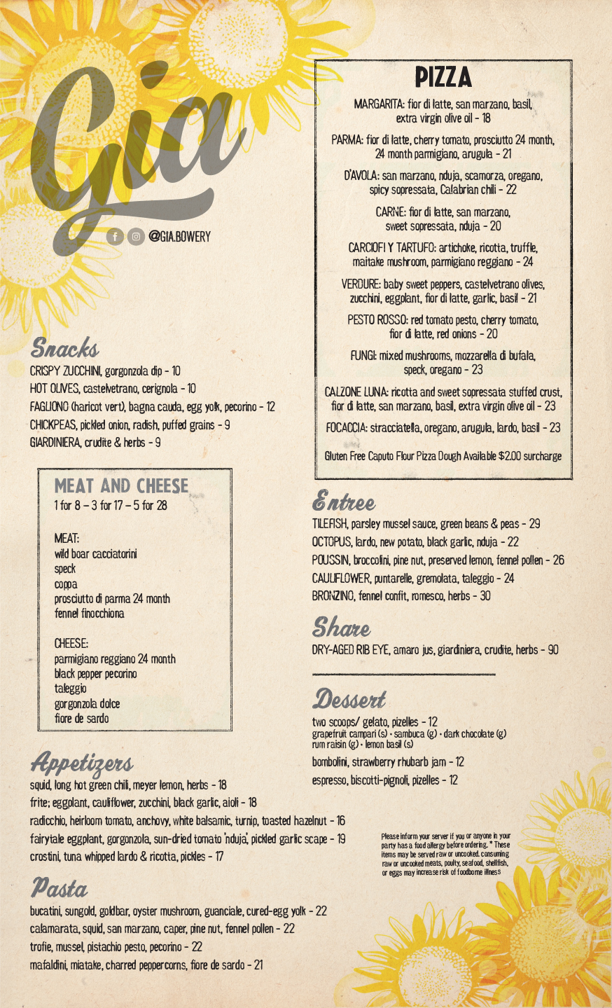 Ciao! Gia is a perfectly small Italian trattoria located on Bowery in lower Manhattan. Reflective of its playful name, Gia is a bright but simple celebration of classic Neapolitan cooking. A true neighborhood dining experience in one of NYC’s best.