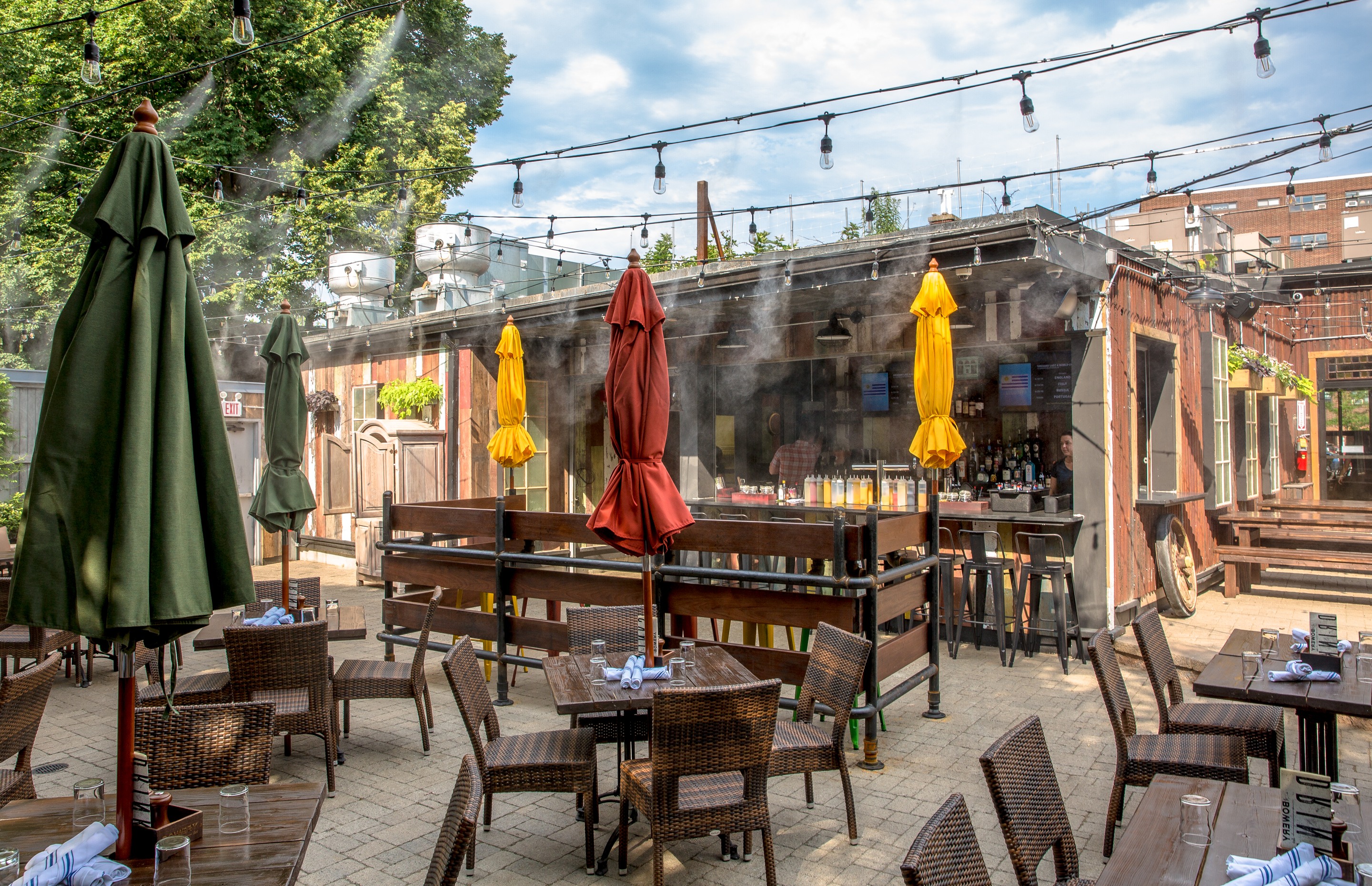 The Bowery Bar is located in the Lower Mills section of Dorchester. The Bowery was designed to be comfortable and classic. Reclaimed wood, vintage finds, and a pulley driven array of ceiling fans define the interior. The best kept secret in Boston is the exterior… the back patio to be precise… which boats an impressive 60+ seats wrapped around an outside bar backed by a lush oasis of plant life.