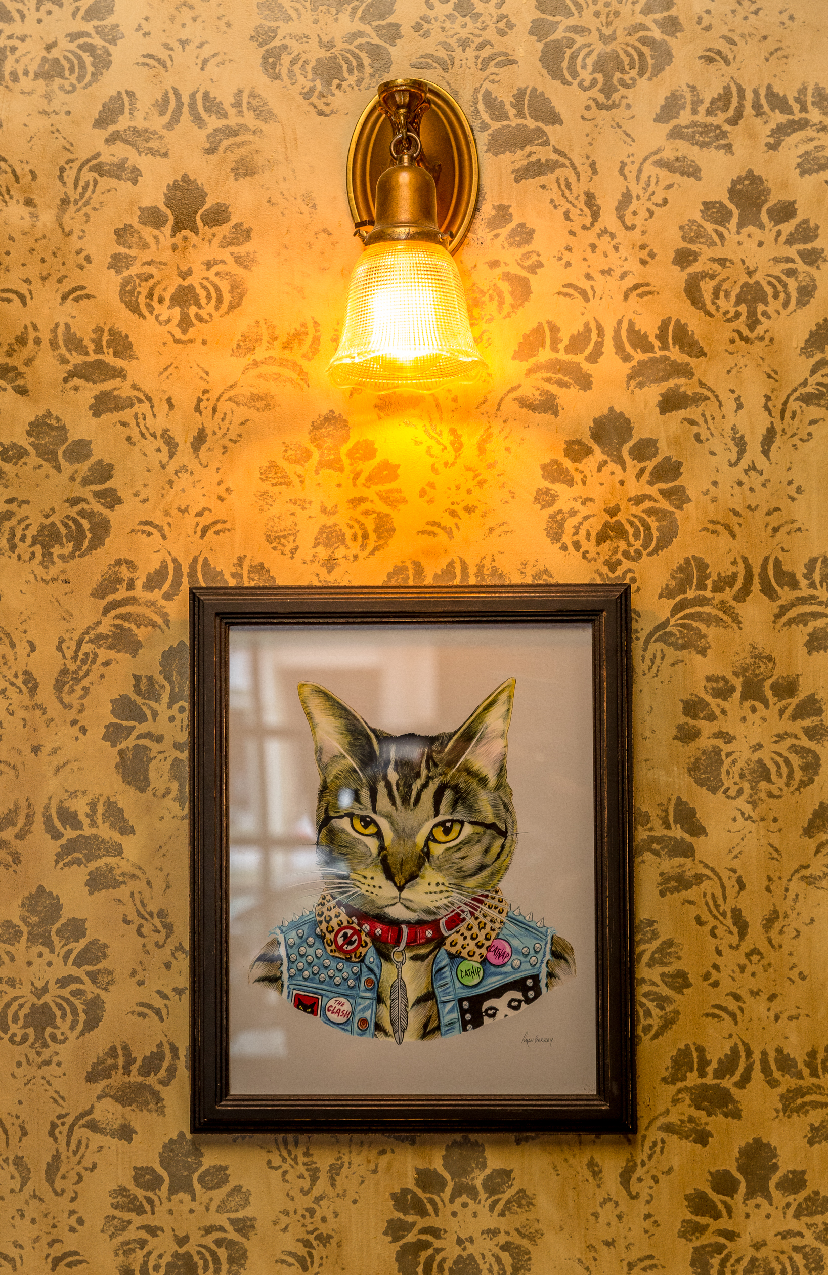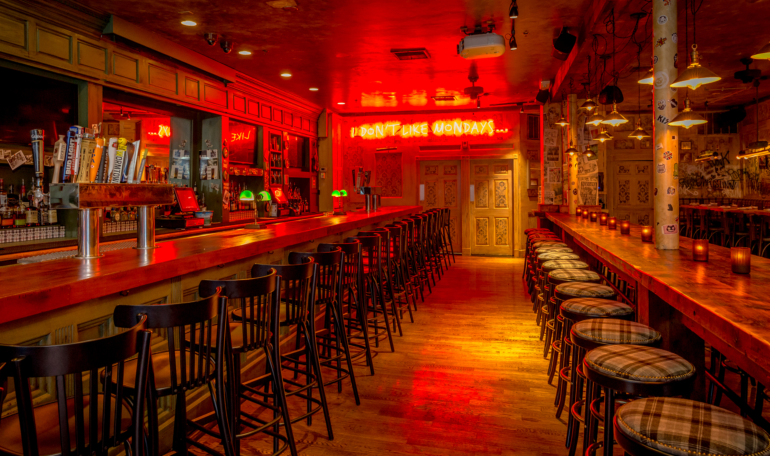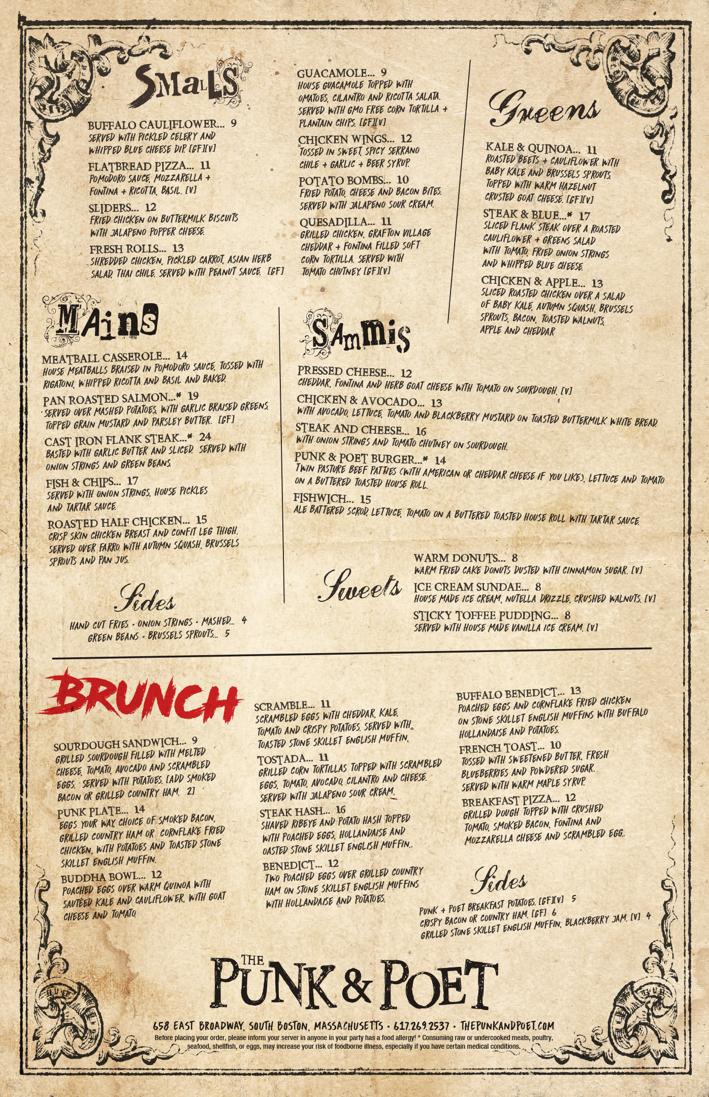 Stylistically, we wanted it to be visually stimulating yet very relaxed. We imagined a classic South Boston Irish bar taken over by punks. A good blend of gritty dive-bar edge with a mildly preppy feel. The name The Punk & Poet was chosen because, generically, it refers to a wide range of outspoken wordsmiths who had something to say about the times they lived in. A vocal exercise commonly preformed in a good bar. More specifically/symbolically it refers to Johnny Rotten of the Sex Pistols and often quoted Irish poet Oscar Wilde, both honored with portraits in the space.