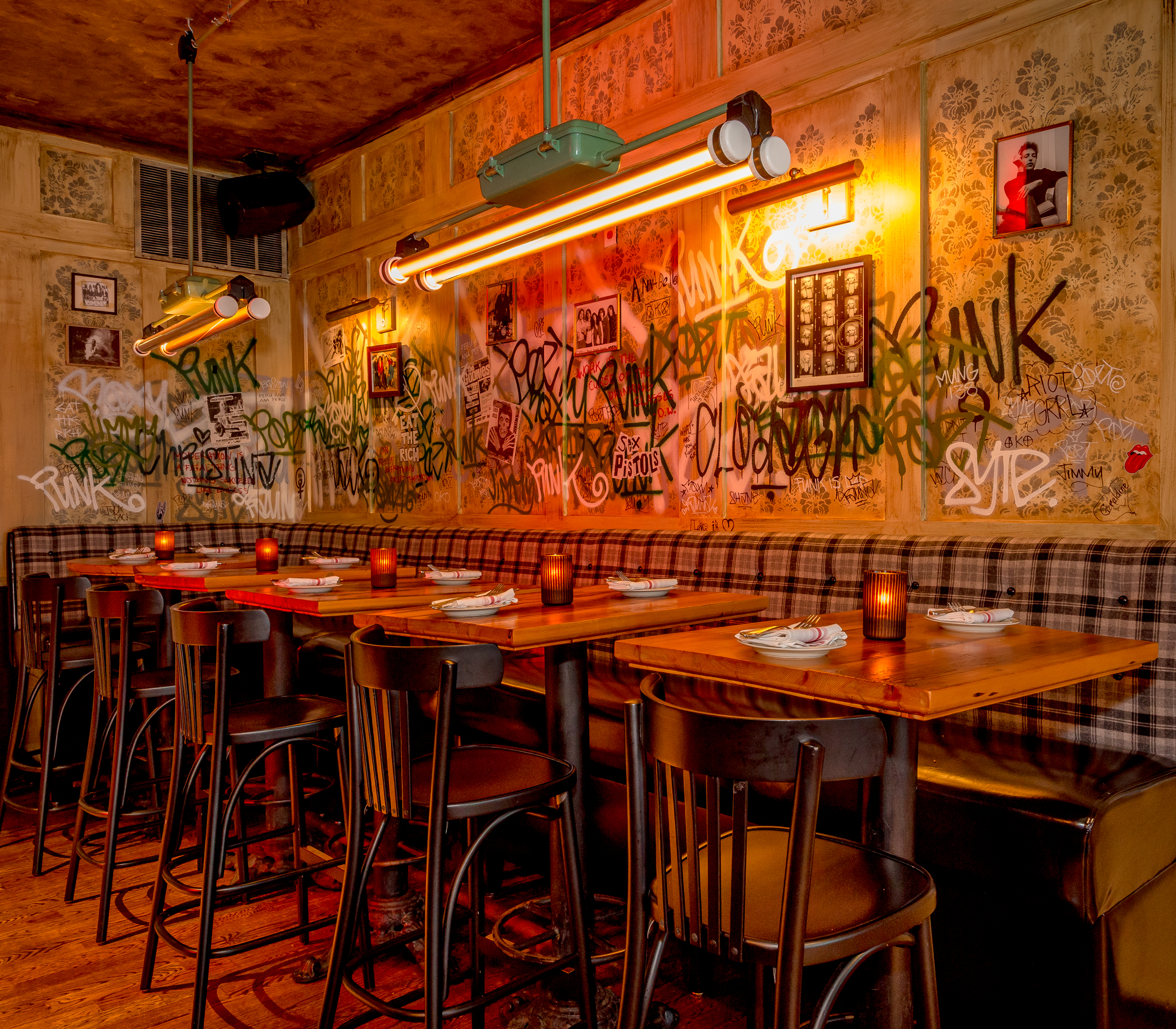 Inspired by the 70’s/80’s Irish, English, and American punk rock movement (U2, Pogues, The Clash, Sex Pistols, Ramones, Blondie, etc…), the goal of this design project was to create a space that was comfortable, fun, and not currently available in the area. Most of the recent restaurant openings in this neighborhood have attempted to bring in something new… something they felt was missing from the current offerings in town. We wanted to do the opposite. We just wanted to make a cool place that fit with its surroundings and makes it easy for residents both new and old to grab a pint.