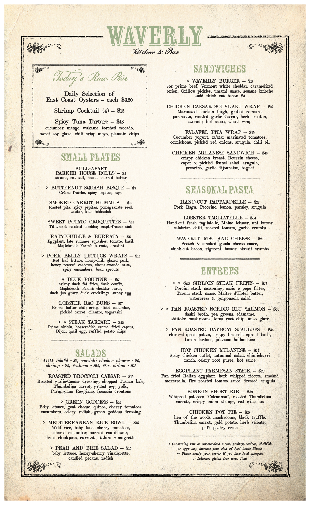 Waverly Kitchen & Bar is exactly what you want it to be. It’s quaint, cozy, and comfortable…. But it is also a bright and bustling…. This one of a kind  neighborhood dining option serves breakfast, lunch, dinner, and drinks to one of Boston’s most historic neighborhoods seven days a week.